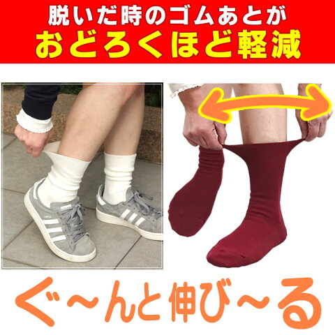 商品説明 ゴム無し構造なのにズレにくい! 靴下工場技術を費やした特殊構造 3足で1740円 (婦人7色・紳士6色) 簡易ラッピング付き! 更に!! メール便発送なら送料も無料! 靴下のゴム跡って・・・痒くなったりカブレたり痛いですよね。