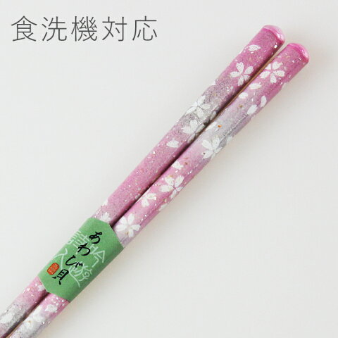 食洗機対応 若狭塗り 箸 あわび貝 花日和 ピンク 21cm (若狭箸 お箸 木製 食洗機対応箸 食器洗い機)