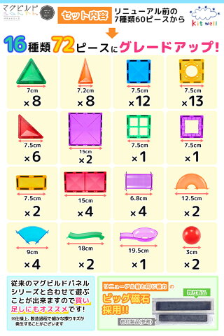 KitWell キットウェル マグビルド パネル スロープセット マグネットブロック 72ピース 知育玩具 知育ブロック カラフル 立体パズル クリスマス ギフト プレゼント 誕生日 キッズ 幼児 子供 お祝い 男の子 女の子 3歳 4歳 5歳 6歳 誕生日 磁石 積み木 マグネットおもちゃ