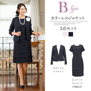 2点セットセレモニースーツについて選べるジャケットと裾ティアードデザインワンピースのセットアップスーツです。