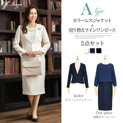 ワンピースは着脱しやすい前開き&セットアップのようなドッキングデザインと、ジャケットと共布でシンプルなラインが美しいタイプをご用意。
