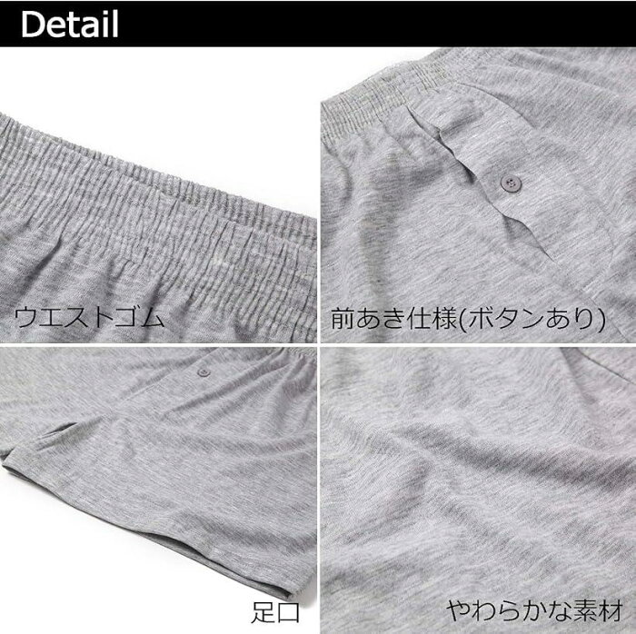 ・綿ならではのソフトな感じで快適のはき心地・ポリエステル配合で吸水速乾性がある・前開きでボタンなし・さらっとはけて、腰ゴムの締め付け感も丁度いいです。