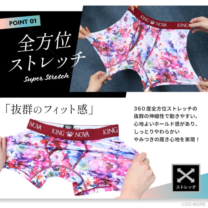 キングノバ≫ オシャレな派手柄デザイン!メンズ ボクサーパンツ 汗をかいてもすぐに乾くドライな速乾性素材でストレスフリー! いつもの毎日が隠れたオシャレで楽しくなる! 着心地バツグンの高品質なボクサーパンツです★
