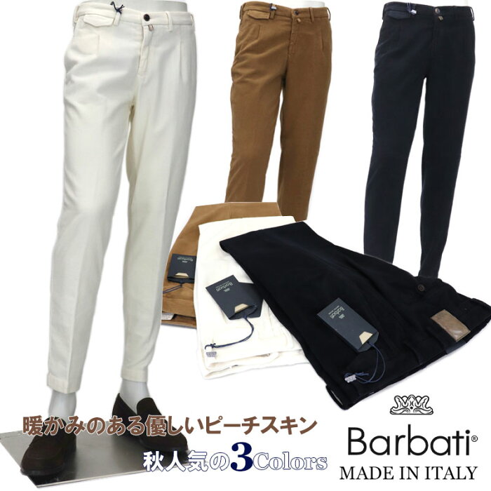 Barbati ≪バルバッティ≫ 暖かみのあるやわらかなコットン 着回し力に優れた大人スタイル!トレンドのワンタックテーパードパンツ 1974年創業のパンツ専業ブランド、Barbati≪バルバッティ≫ 1974年創業のパンツ専業ブランド、Barbati≪バルバッティ≫ 南イタリアから発信するバルバッティのパンツは、イタリア、フィレンツェの 有名セレクトショップでも多数取り扱われている、 昨今ではジャケットはじめアウター、スーツ、コートにいたるまで展開し、 トータルファッションブランドとしても注目のブランドです。