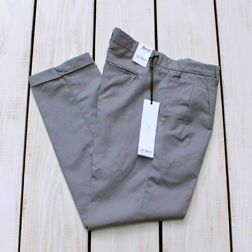 YAN SIMMON Two Tack Tapered Trousers stretch cotton linen Grigio ヤン シモン 2タック テーパード トラウザーズ パンツ ストレッチ コットン リネン 製品洗い ライトグレー made in italy イタリア製 yan simmon spirit
