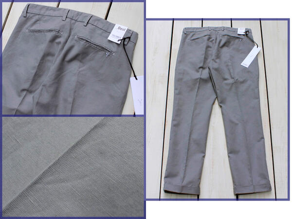 ◆生産国 ITALY ◆素材 52%-LINEN/46%-COTTON/2%-ELASTANE ◆サイズ/cm 44-ウエスト:78/股上:30 /わたり:29/股下:65/裾幅:17 46-ウエスト:81/股上:31 /わたり:29/股下:65/裾幅:17 48-ウエスト:85/股上:31 /わたり:30/股下:66/裾幅:18 50-ウエスト:89/股上:32 /わたり:31/股下:67/裾幅:18 ※製品の型崩れ防止のため、バックポケット口は仮縫いで縫い止めされております。
