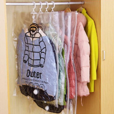【リング付き】まだクローゼットのスペースの不足について心配ですか? この衣類保管用圧縮袋には、メインフックに小さなリングが付いています。