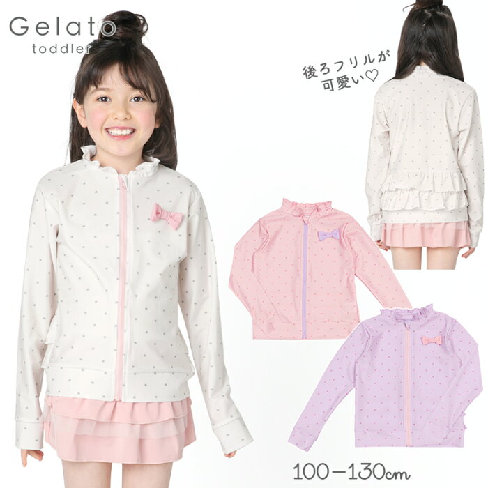 可愛くUVカット♪ ラッシュガード キッズ 女の子 110 120 130 100 長袖 フードなし 子供 水着 幼稚園 保育園 フルジップ ジップアップ UPF50+ UV ラッシュ Gelato toddler ジェラート 送料無料