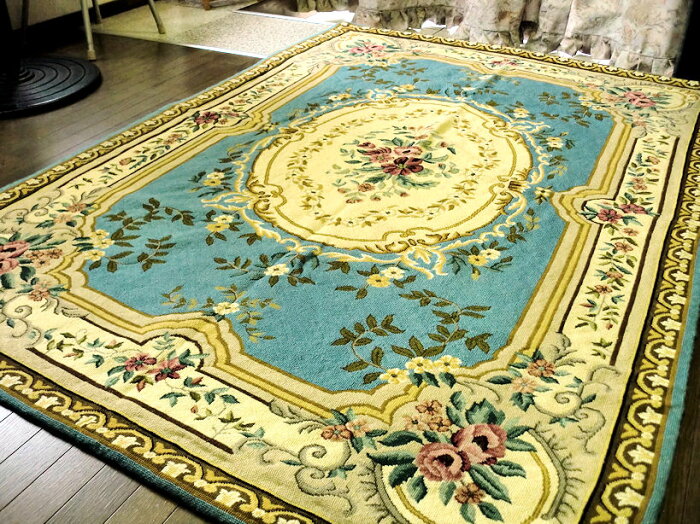 希少!!1目1目が芸術品■インド手刺繍ラグマット 140×200 約 1.5畳 ウール woolT ラグマット 厚手 北欧 夏 カーペット 絨毯 小花