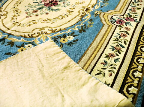 希少!!手刺繍ラグマットTターコイズブルー ★