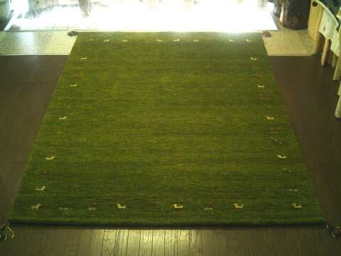 インド手織りギャッベ【緑芝生草色】 伝統ギャッベ絨毯の特徴をモチーフにして、インドの手織り作業でできた大変厚みがある手織り絨毯です。