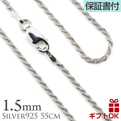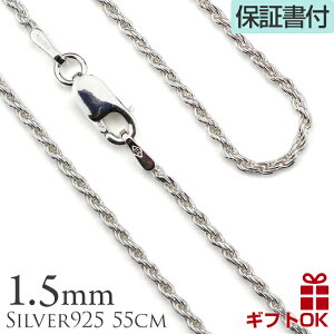 【クーポン配布中】 シルバー925 ロープチェーン 太さ約1.5mm シルバー925 長さ選べる 55cm ネックレス チェーン メンズ レディース 男性用 女性用 ハワイアンジュエリー プレゼント ギフト モアナ