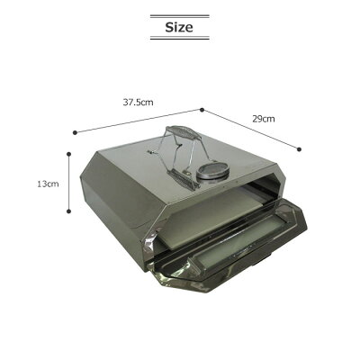 商品名 《尾上》 尾上製作所 コンパクトピザオーブン サイズ・重量 本体サイズ:37.5 x 29 x 13cm オーブン室有効内寸:幅25x奥行25x高さ5cm ピザストーンサイズ:25 x 28.5cm3kg 素材 ステンレス、スチール、セラミック、アルミ 備考 ●ピザストーンの遠赤外線効果でパリっと仕上がる。