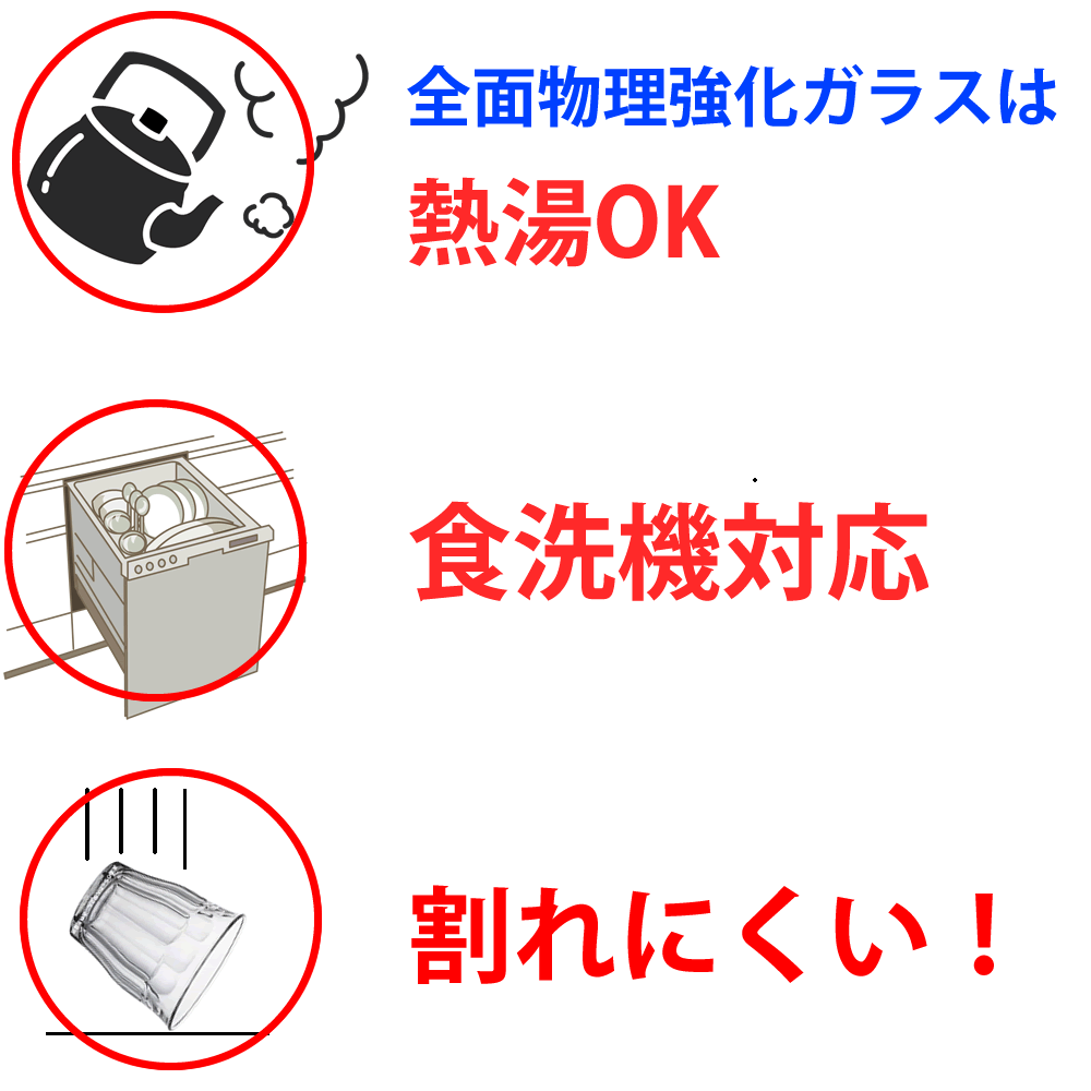 DURALEX(デュラレックス)は、全面耐熱・強化ガラスなので衝撃にも強く、100℃の熱湯を注いだり、−25℃の冷却といった温度にも耐えることができます! 食器洗浄器や、電子レンジにもOKというありえないくらいすごいガラスです。